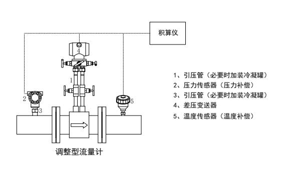 CRT调整型流量计分两种结构——一体式和分体式。一体式由一次阻流(传感)元件、变送器和阀组组成,分体式除上述部件外还增加了引压管线。