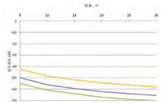 备注:天线增益表示定向天线辐射集中程度的参数)不同频率(26 10 6 GHZ)、同一天线和介电常数及距离增长的接受信号图如下所示: