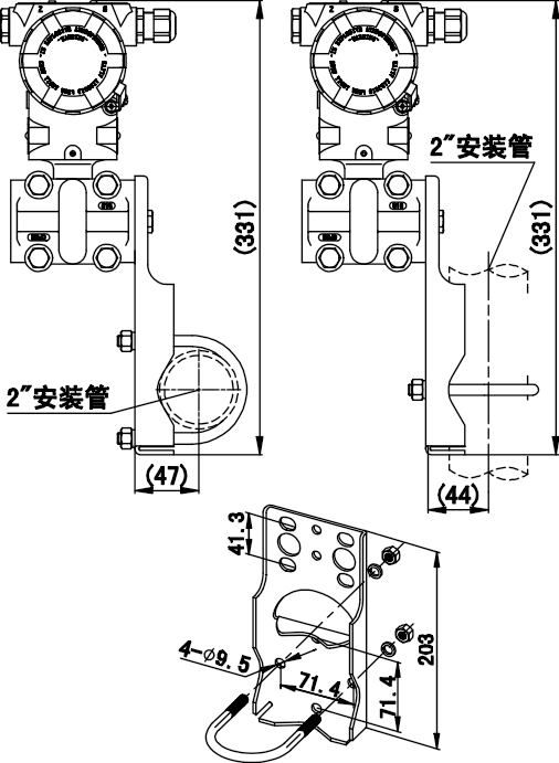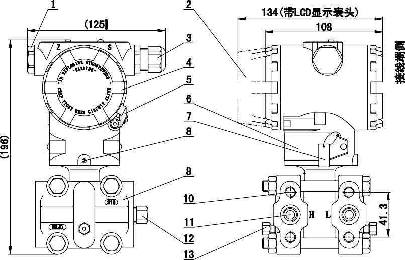 CR3000 DP 型智能差压变送器外形尺寸(单位 mm)