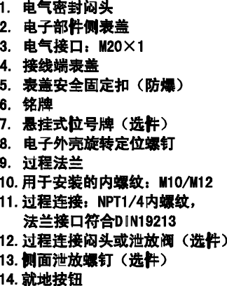 注 :1.订货号的确定方法:第1 部分 CR3000DP-代码 1 代码 2?代码 10/选项代码/选项代码?第2 部分 XXX~XXX kPa(或其它工程单位)(出厂标定测量范围)第3 部分 位号(Z多 16 个字符)(当有选项L1 时)2.代码 1~代码 10 依次B选 1 次且仅选 1 次。选项代码则按需选择,可不选、选一或选多。3.应根据测量范围选择相应量程, 不跨量程档选型。4. 多种过程连接转换接头的详细信息见“过程连接转换接头”章节。5. 如某项代码为有要求的非标项,则该位代码可用 X 或Y 表示,并给出X 或   Y 的说明。